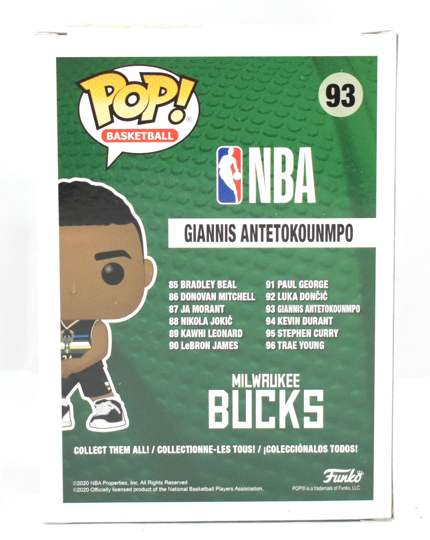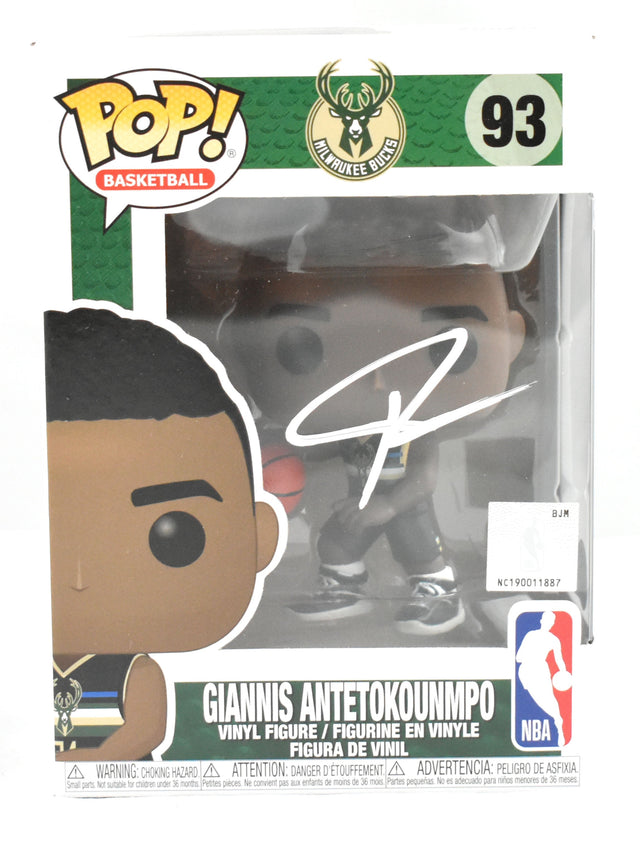 - Official Hand-Signed Funko Pop #93 — Features the authentic autograph of Giannis Antetokounmpo, the Milwaukee Bucks’ powerhouse forward known for his dominant performances and leadership during the Bucks' 2021 NBA Championship run.