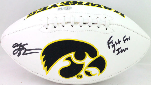 Own a piece of Iowa Hawkeyes history with this AJ Epenesa hand-signed logo football, featuring the exclusive "Fight for Iowa" inscription. A standout defensive force for Iowa, Epenesa made a lasting impact on the field, making this autographed football a must-have for dedicated Hawkeyes fans and collectors.