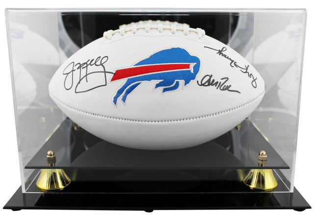 Bills (3) Reed, Kelly & Thomas Signed White Panel Logo Football W/ Case BAS Wit