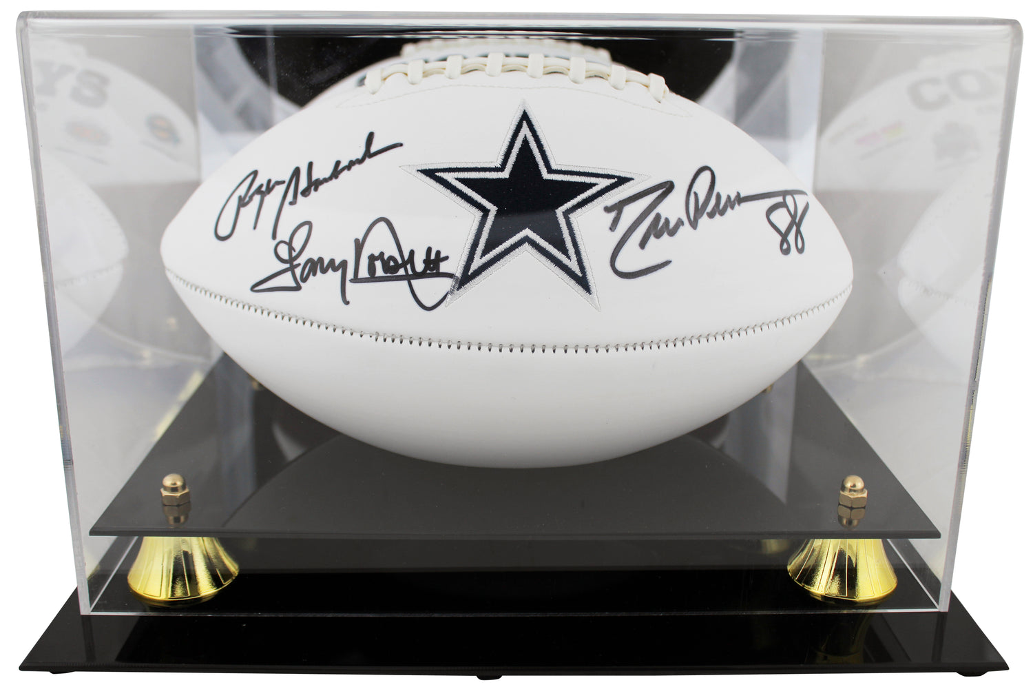 Cowboys (3) Staubach, Dorsett & Pearson Signed Football W/ Case BAS Witnessed