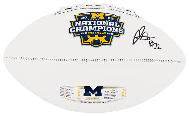 Celebrate an unforgettable season in Michigan Wolverines history with this Jaylen Harrell signed Michigan Wolverines 2023 National Champions Baden white logo football. A standout piece for any college football fan or serious collector, this limited-edition item immortalizes Michigan’s incredible 2023 National Championship run — a year when elite defense and relentless grit powered the Wolverines to the pinnacle of college football. This football features an official signature from standout linebacker Jaylen Harrell, a key contributor to Michigan’s historic championship defense.