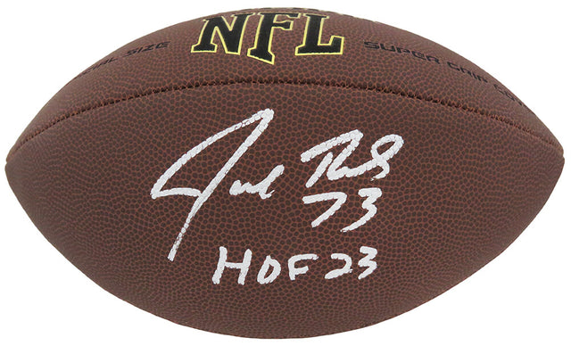 Own a piece of football history with this Joe Thomas signed Wilson Super Grip full-size NFL football, featuring his exclusive 'HOF 23' inscription. A must-have for Cleveland Browns fans and memorabilia collectors, this football honors Thomas’s legendary career and his well-deserved place in the Pro Football Hall of Fame.
