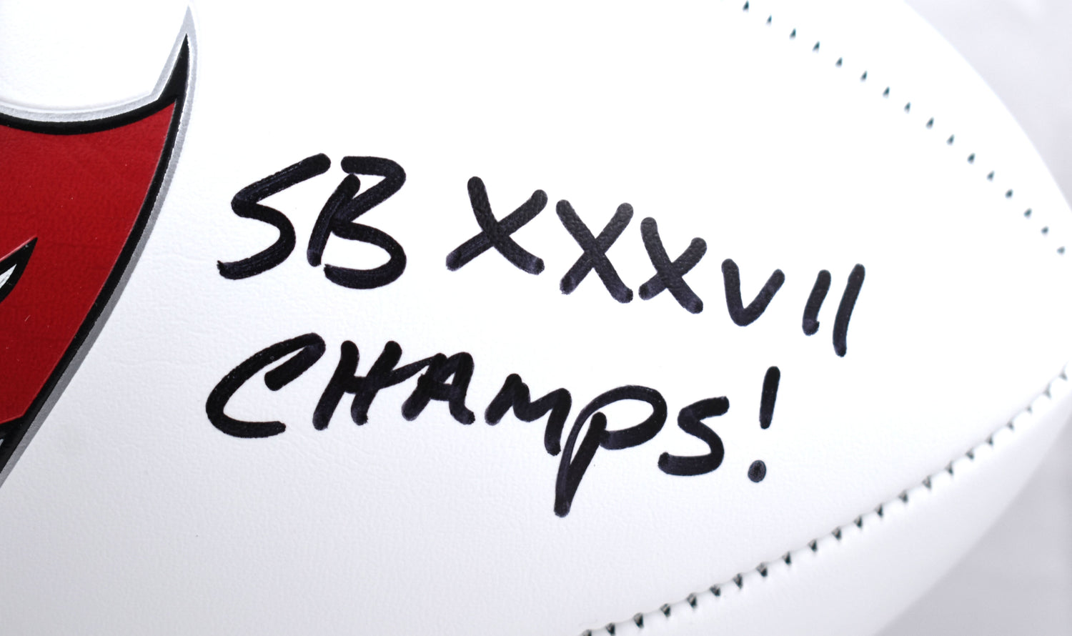 Own a piece of Tampa Bay Buccaneers history with this hand-signed Mike Alstott autographed football, celebrating the team’s Super Bowl Championship legacy. This official Tampa Bay Buccaneers Franklin Logo Football includes Alstott's "SB Champs" inscription, making it a must-have collectible for dedicated fans and memorabilia enthusiasts.