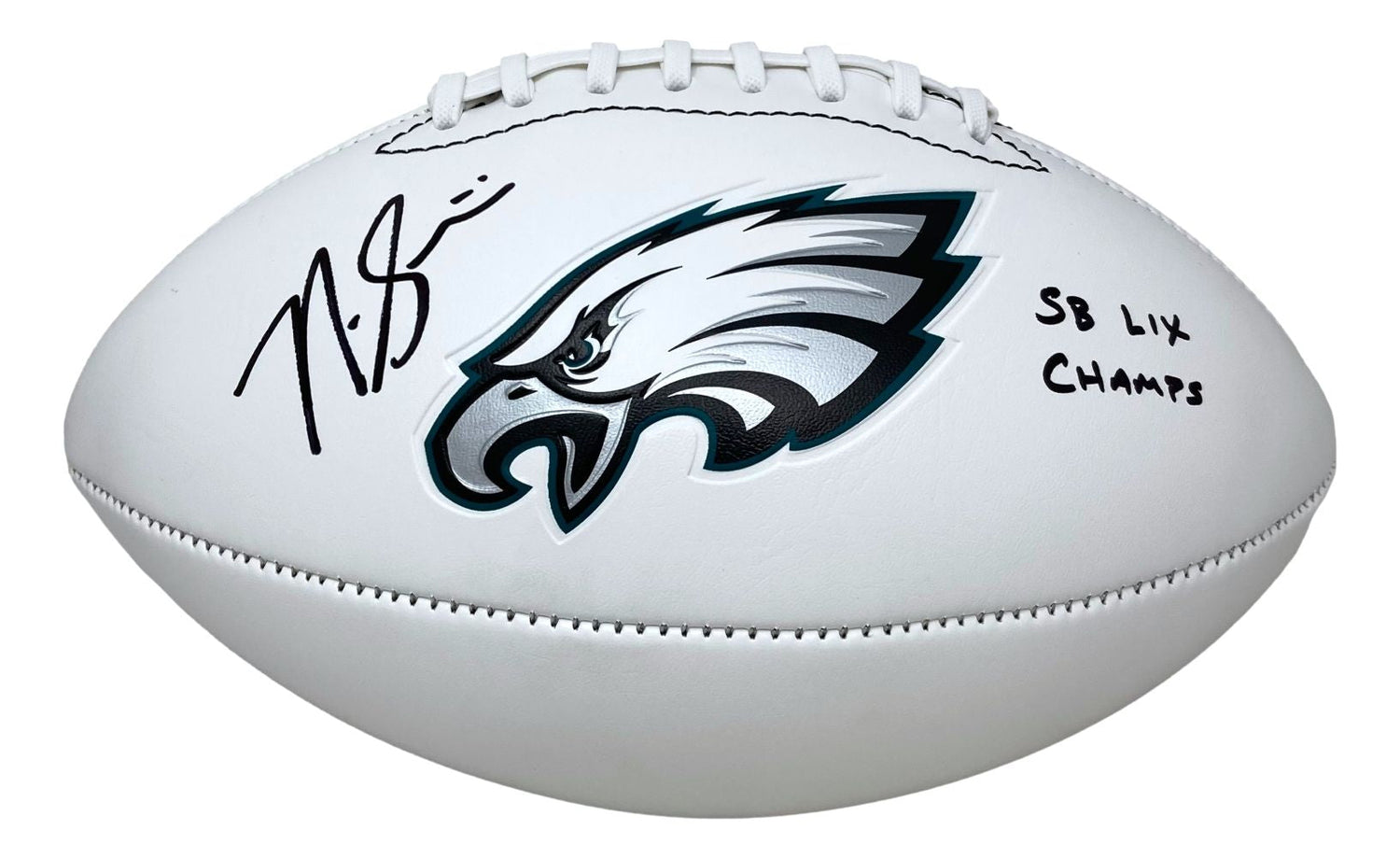 Own a piece of Philadelphia Eagles history with this Nick Sirianni signed Eagles logo football, featuring his exclusive inscription, "SB LIX Champs." This collectible football is a must-have for die-hard Eagles fans and sports memorabilia collectors alike. Authenticated by Beckett, it ensures both quality and authenticity.