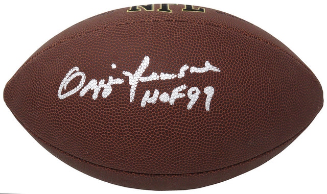 Own a piece of football history with this Ozzie Newsome signed Wilson Super Grip full-size NFL football, complete with a "HOF 99" inscription. A legendary tight end and Hall of Famer, Newsome was a key figure in the Cleveland Browns' offense and later became a trailblazing executive in the NFL. This autographed football is a must-have for dedicated fans and collectors alike.
