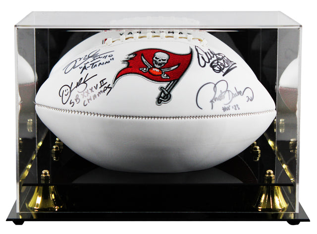 - Personally hand-signed by Buccaneers legends: Warren Sapp, Ronde Barber, Mike Alstott, and Derrick Brooks
