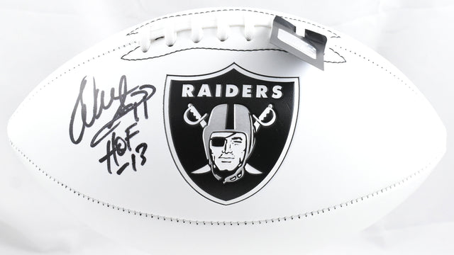 Celebrate the legendary career of defensive powerhouse Warren Sapp with this officially signed Raiders Logo Football. A staple of both the Tampa Bay Buccaneers and Oakland Raiders, Sapp was enshrined in the Pro Football Hall of Fame in 2013, and this collectible captures that legacy with his “HOF” inscription. Perfect for fans of the Silver and Black or collectors of NFL greats, this football is authenticated and ready to be the crown jewel of your memorabilia collection.