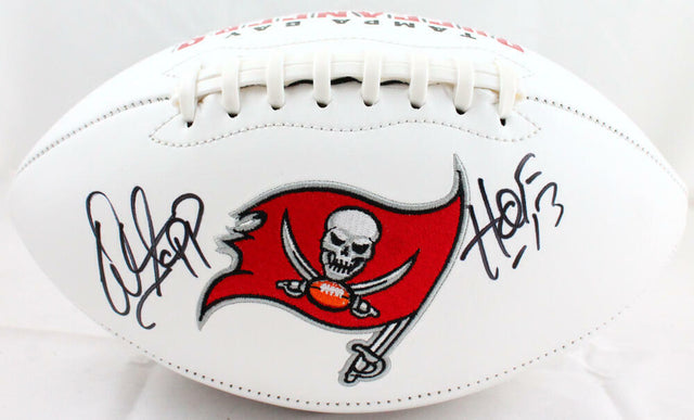 Own a piece of Tampa Bay Buccaneers history with this Warren Sapp autographed logo football, personally signed and inscribed with "HOF" to commemorate his Hall of Fame career. A dominant force on the defensive line, Sapp played a crucial role in the Buccaneers' rise to prominence, including their Super Bowl XXXVII victory. This collectible is perfect for dedicated Bucs fans and memorabilia enthusiasts alike.