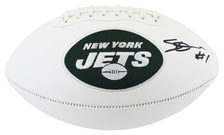 Jets Ahmad "Sauce" Gardner Signed Rawlings White Panel Logo Football BAS Witness