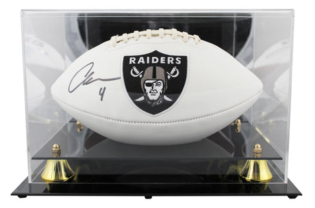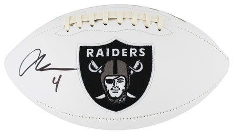 Raiders Aidan O'Connell Signed White Panel Logo Football W/ Case BAS Witnessed