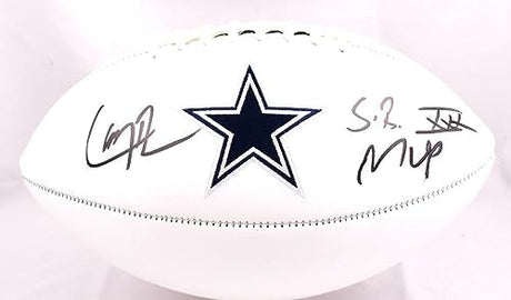 Tony Dorsett R. Staubach Signed Cowboys Distressed Logo Football- Beckett W Holo