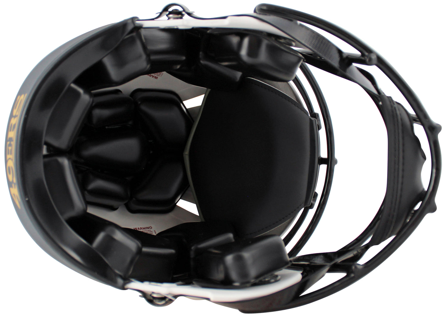 This San Francisco 49ers Lunar Alternate Full Size Speed Proline Helmet is a must-have for any die-hard Niners fan. Personally signed by Patrick Willis and Frank Gore, this exclusive collectible captures the legacy of two legends who helped define the 49ers’ dominant era. Adding a rare touch, Willis inscribed "Faithful To The Bay" alongside his signature, making this item even more special. Key Features: