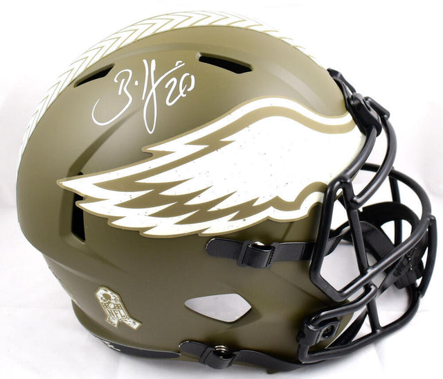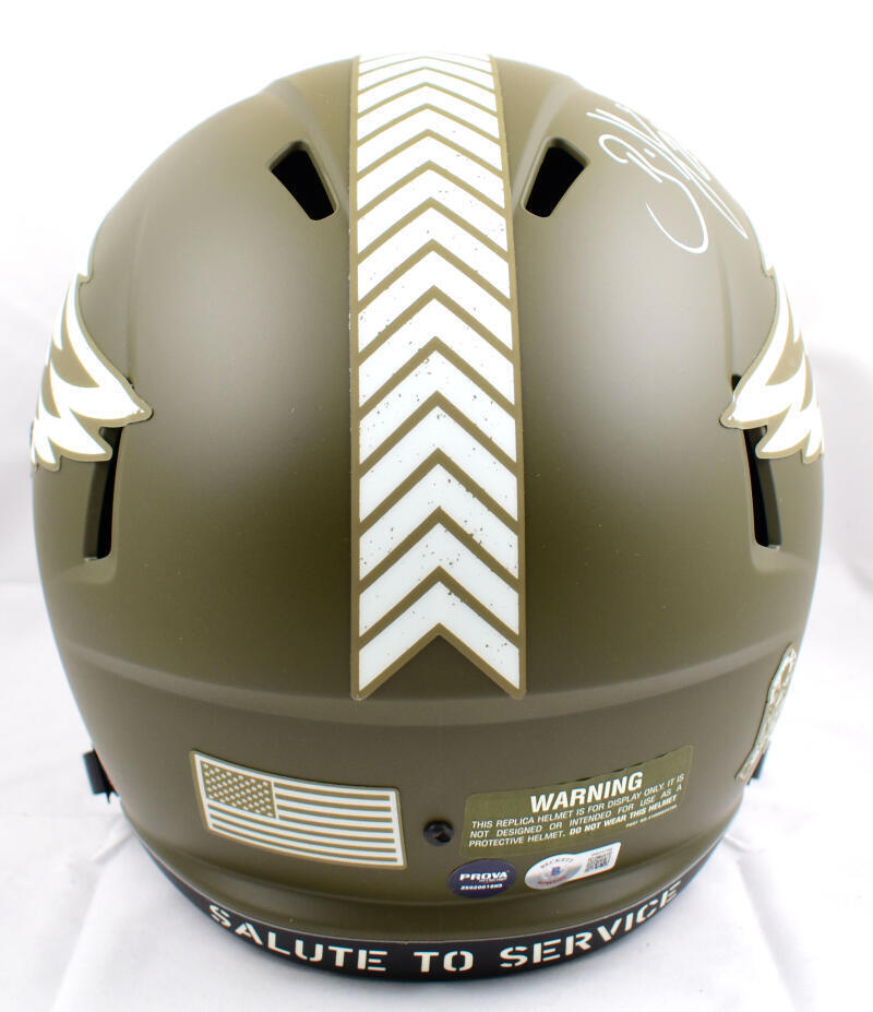 Brian Dawkins Signed Eagles F/S Salute to Service Speed Helmet-Beckett W Holo