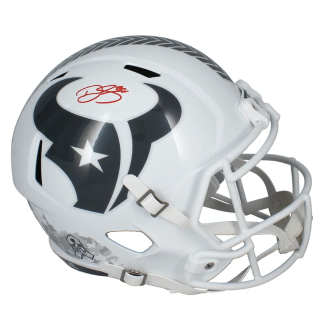 Dalton Schultz Autographed (in Red) Houston Texans 2024 Salute to Service Speed Full Size Helmet Beckett Witnessed