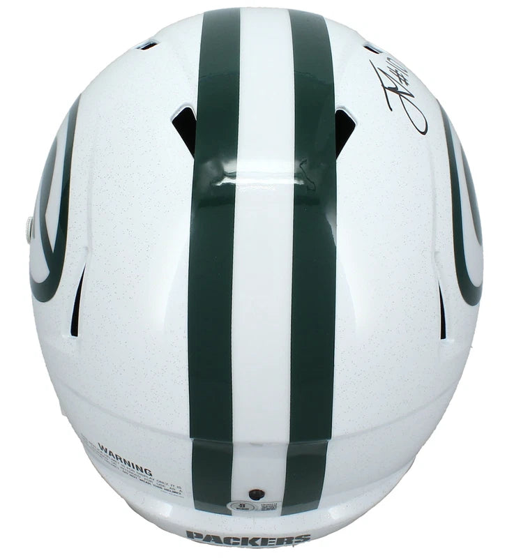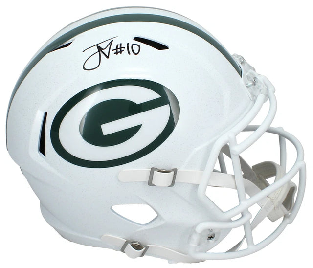 Celebrate the next chapter in Green Bay Packers history with this stunning Green Bay Packers full size replica Riddell 2024 Alternate White Speed helmet, personally hand-signed by rising star quarterback Jordan Love. A must-have for dedicated Packers fans and collectors, this autographed helmet showcases the modern white alternate design introduced for the 2024 NFL season—a bold, clean look that reflects the team's evolving legacy.