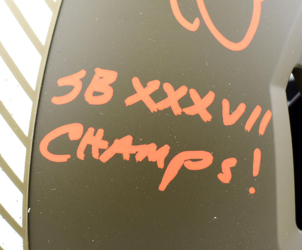 Mike Alstott Signed Bucs F/S Salute to Service Speed Auth Helmet w/2 insc.- BAW