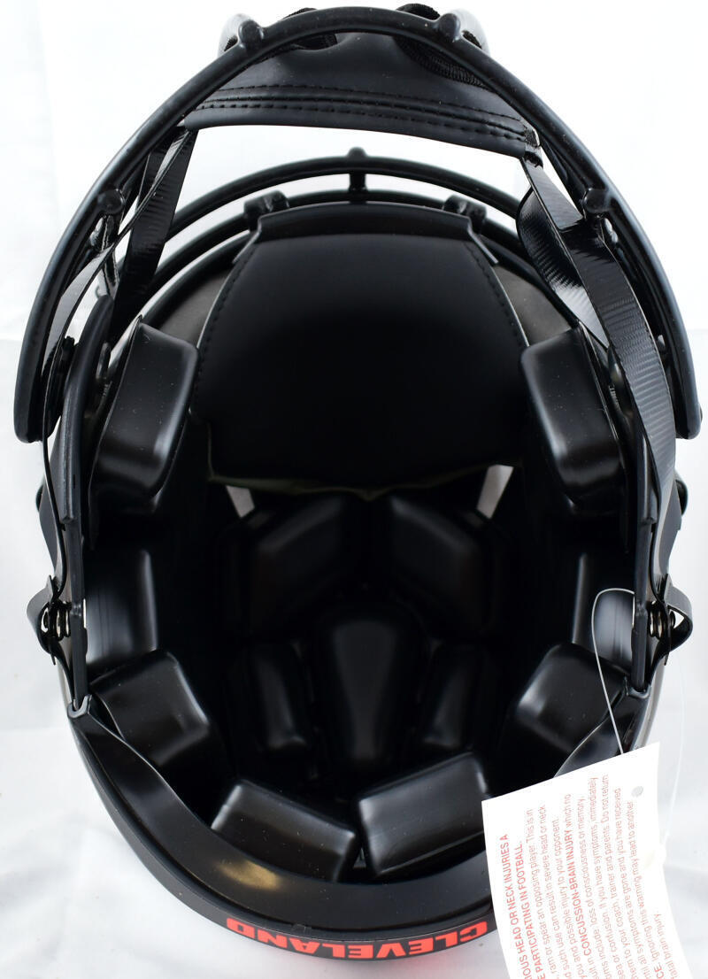 Own a piece of Cleveland Browns history with this Nick Chubb Autographed Riddell Full-Size Eclipse Speed Authentic Helmet. As one of the NFL’s most dominant running backs, Nick Chubb has electrified fans with his powerful running style and game-changing plays, making this signed helmet a must-have for any Browns enthusiast or memorabilia collector.