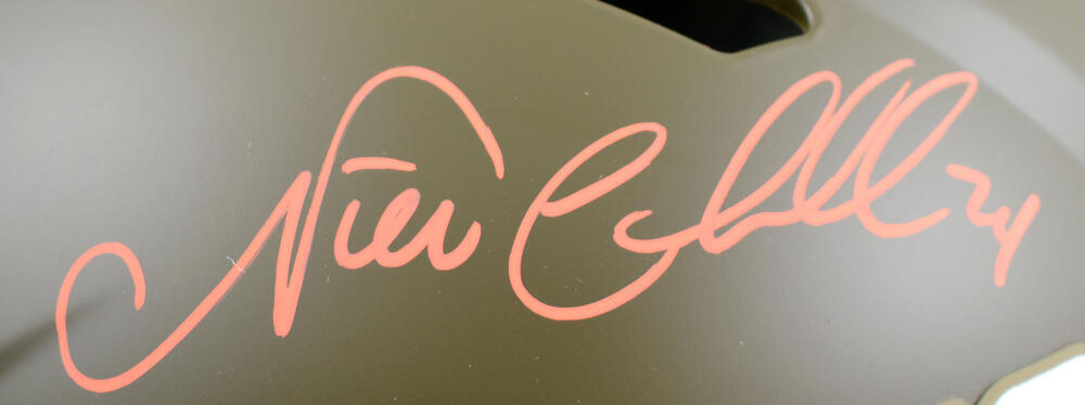 Nick Chubb Signed Browns F/S Salute to Service Speed Authentic Helmet-Beckett W