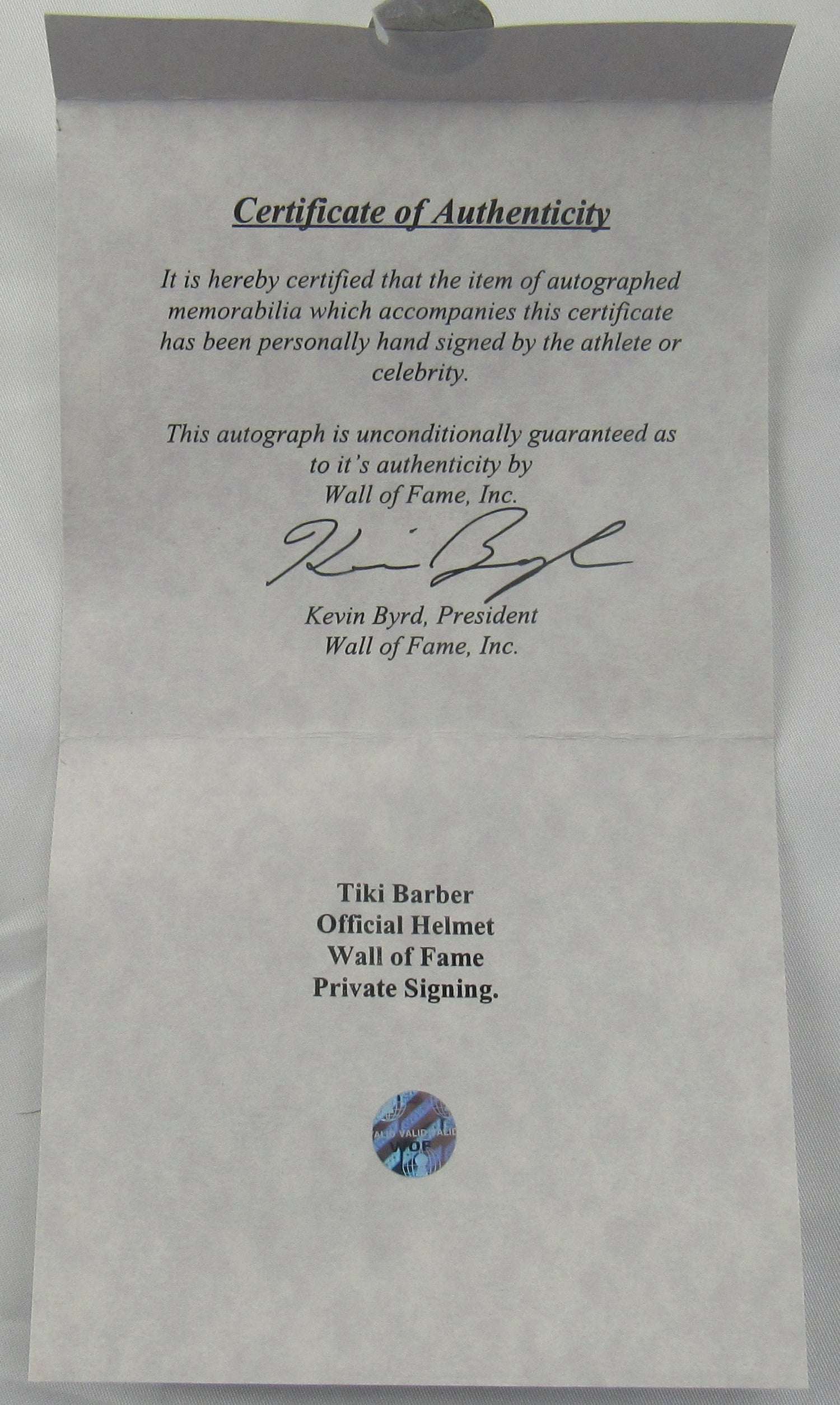Whether you watched Tiki Barber dominate the field for the New York Giants or are simply a passionate collector of NFL memorabilia, this signed helmet is a prized piece. Secure this rare collectible today and showcase your Giants pride in style!