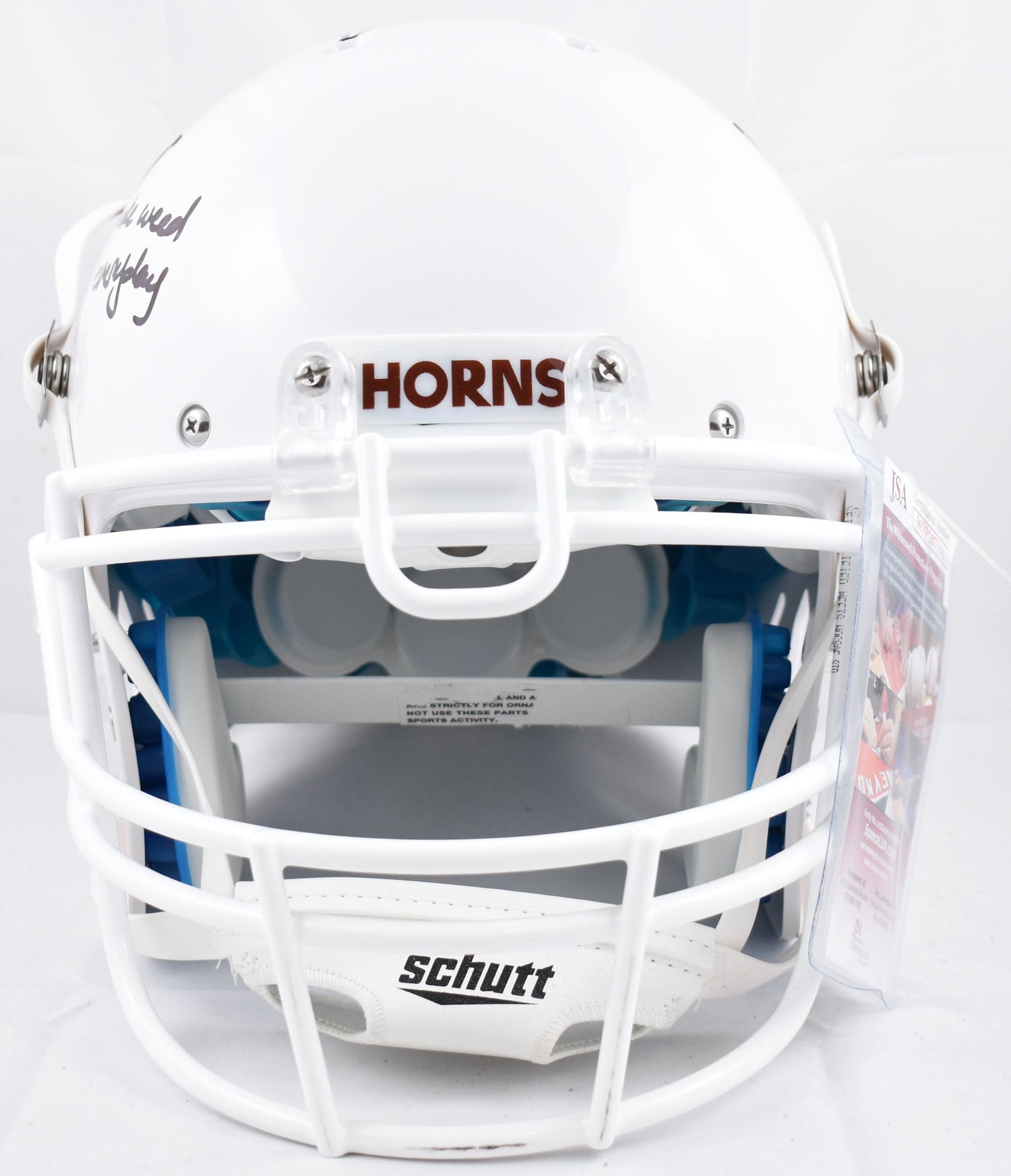 Own a piece of Texas Longhorns history with this Ricky Williams hand-signed Riddell Speed Authentic Helmet. A must-have for serious collectors and fans, this autographed helmet is authenticated by JSA Witnessed Authentication, ensuring its authenticity with a numbered hologram and matching Certificate of Authenticity (COA).