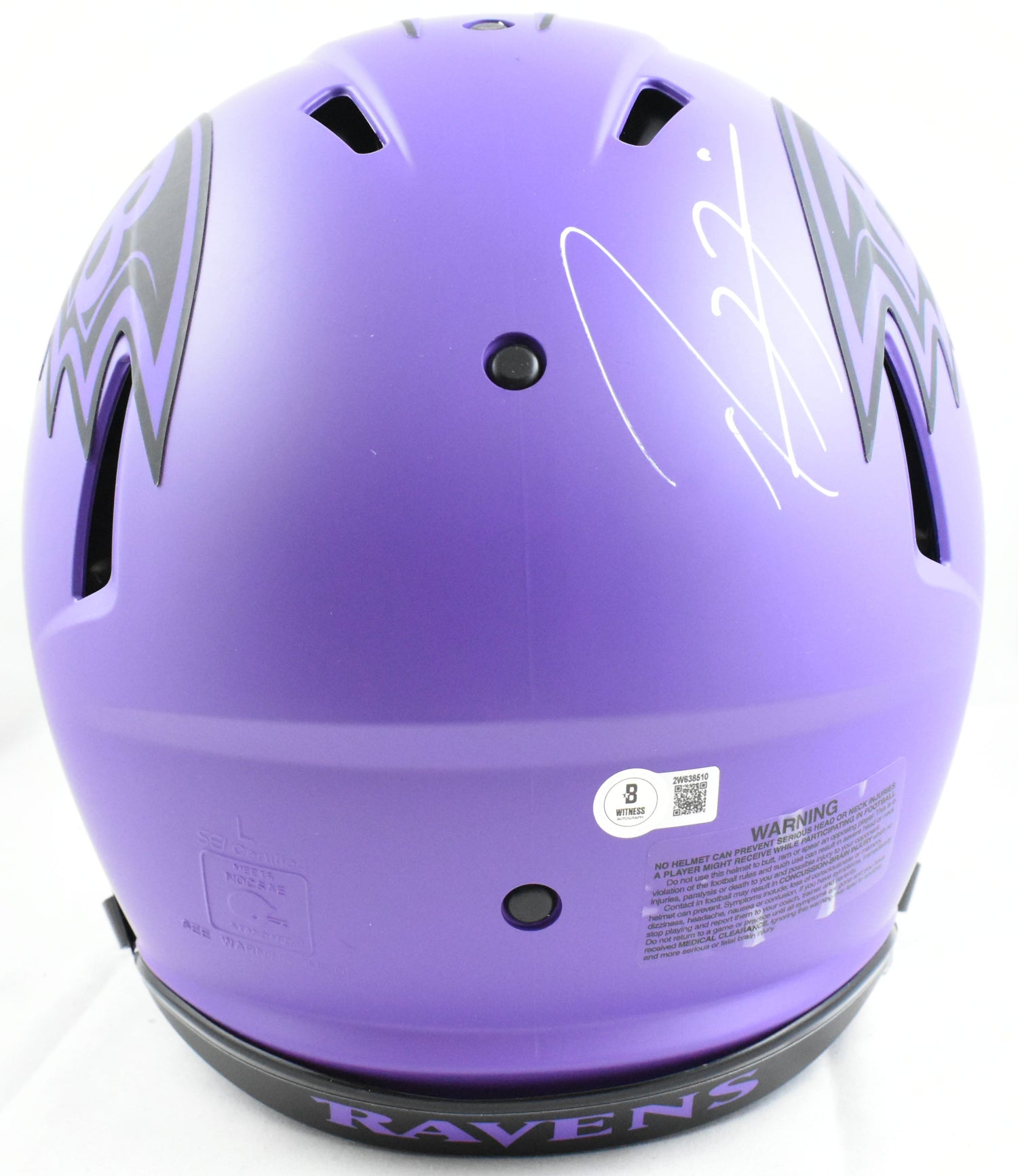 Celebrate the legacy of the Baltimore Ravens’ defensive dynasty with this Ray Lewis, Terrell Suggs, Ed Reed Autographed Riddell Full-Size Ravens Speed Authentic Helmet. Combining the signatures of three of the most feared defenders in NFL history, this helmet is a must-have for serious collectors and passionate Ravens fans alike. Ray Lewis, the heart of the Ravens' defense and a 2-time Super Bowl Champion; Ed Reed, one of the greatest safeties ever and a 2019 Hall of Fame inductee; and Terrell Suggs, the franchise’s all-time sack leader, each left a lasting impact on the game of football. Their legacy lives on in this authentic signed collectible. Each signature is authenticated through Beckett Witnessed Authentication, ensuring 100% authenticity and peace of mind for collectors. A unique numbered hologram and scannable QR code link directly to the item’s signing details, viewable on the Beckett Authentication website.