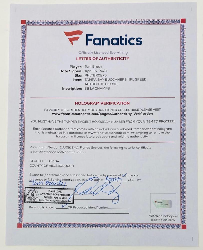 TOM BRADY Autographed/Inscribed "SB LV Champs" Tampa Bay Buccaneers Speed Authentic Helmet FANATICS is backordered and will ship as soon as it is back in stock.