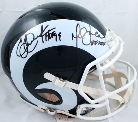 Faulk/Dickerson Signed Rams Speed Authentic FS Helmet w/ HOF- BA W Holo *Black