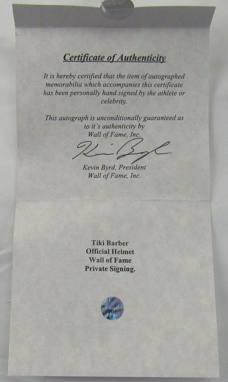 Tiki Barber Signed Full Size Riddell Giants Helmet Proline