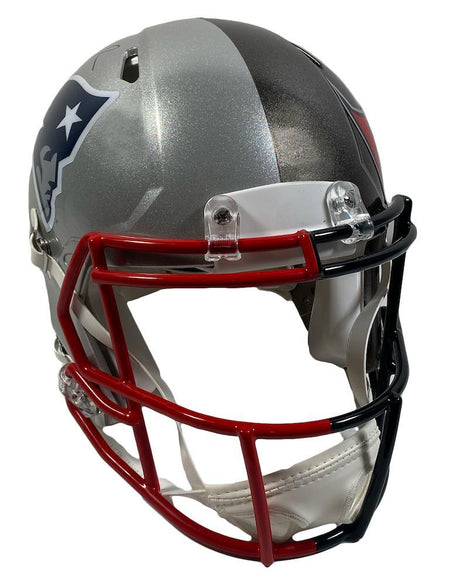 TOM BRADY Patriots Side Autographed Patriots / Buccaneers Combo Speed Authentic Helmet FANATICS