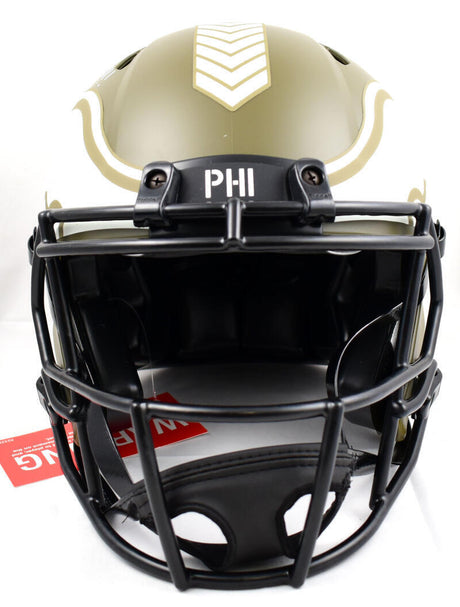 Brian Dawkins Signed Eagles F/S Salute to Service Speed Helmet-Beckett W Holo