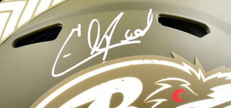 Ed Reed Signed Ravens F/S Salute to Service Speed Authentic Helmet- Beckett W
