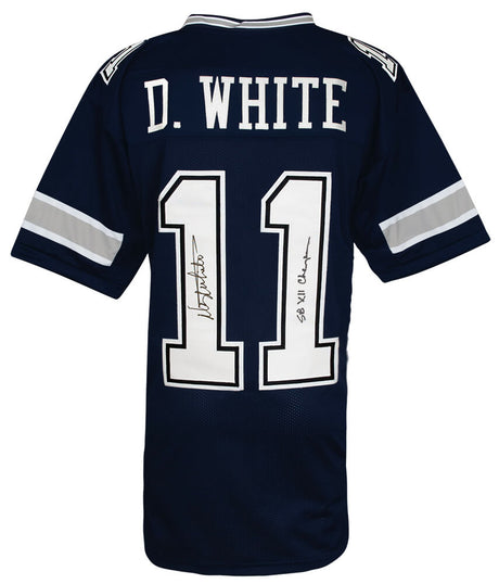 Danny White Signed Navy Custom Football Jersey w/SB XII Champs