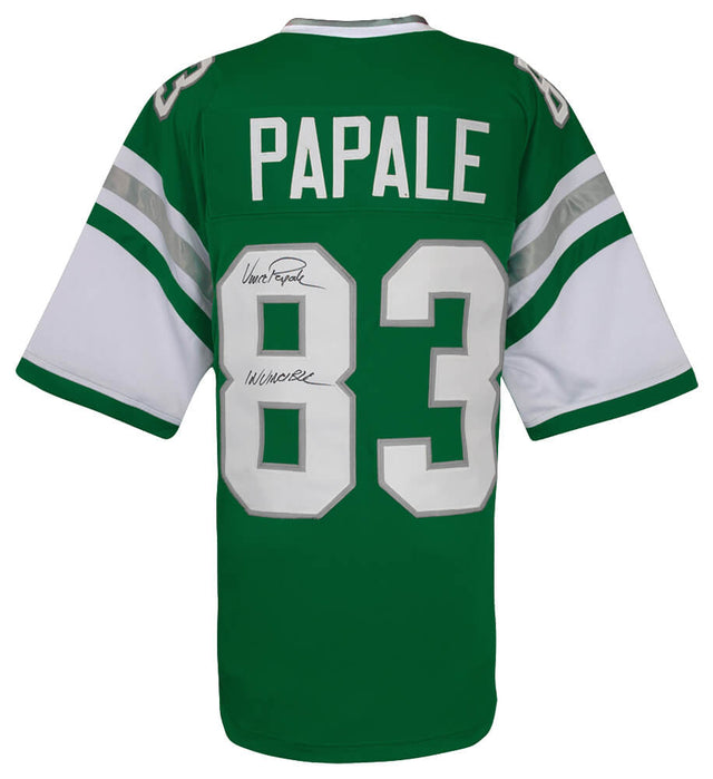 Own a piece of Philadelphia Eagles and cinema history with this Vince Papale signed light green custom football jersey, inscribed with the iconic word: "Invincible". Made famous as the underdog walk-on featured in Disney's 2006 film "Invincible," Vince Papale's inspiring story symbolizes perseverance and heart—making this signed jersey a must-have for any serious sports memorabilia collector or fan of the Philadelphia Eagles.