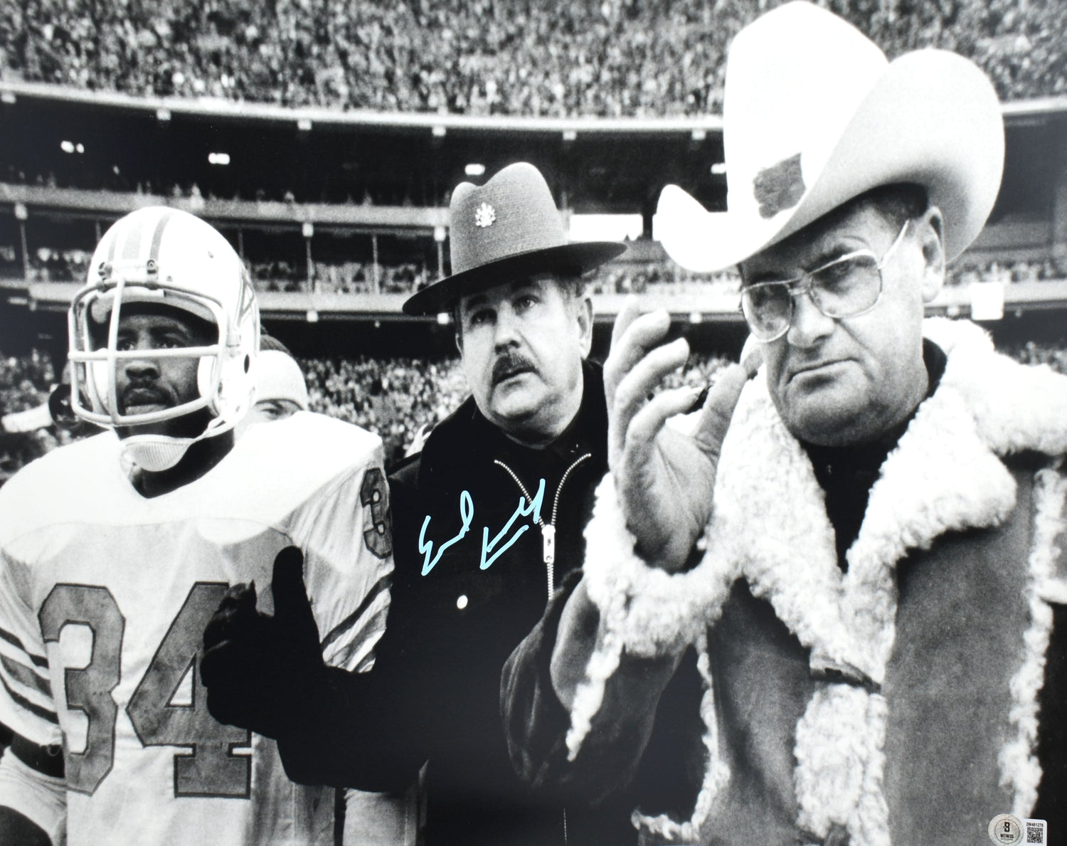 Earl Campbell Autographed Oilers 16x20 B/W Bum Photo - Beckett W Holo *Blue is backordered and will ship as soon as it is back in stock.