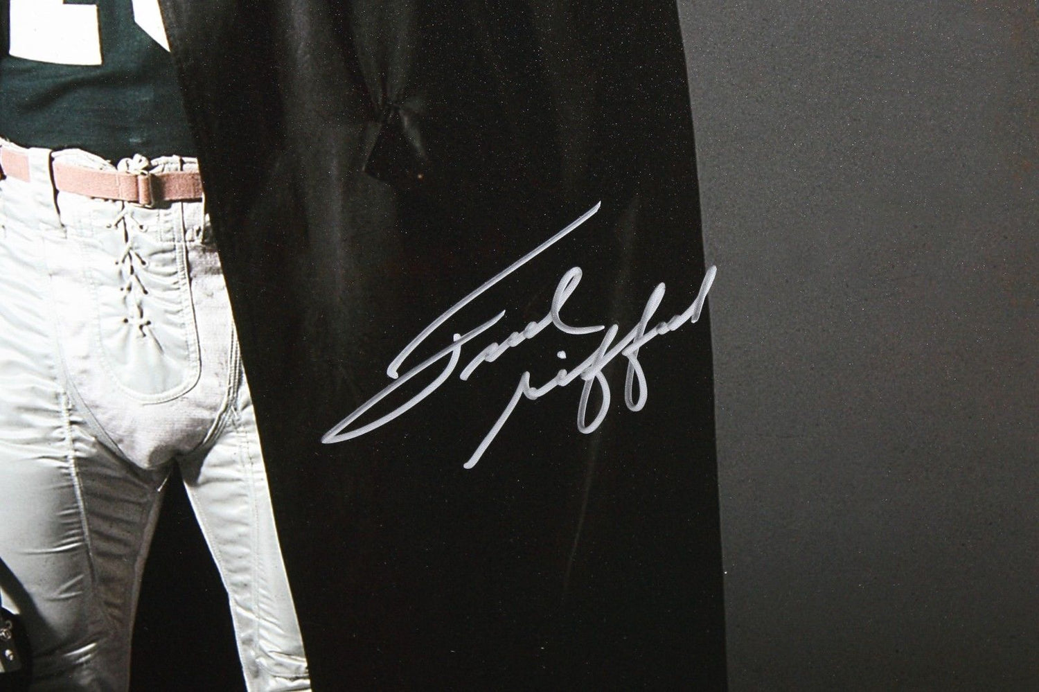 Own a piece of football history with this hand-signed 16x20 photo of Frank Gifford, legendary star of the New York Giants. An icon of the gridiron, Gifford was a Pro Football Hall of Famer, an NFL MVP (1956), and a key figure in the Giants' storied legacy. This autographed photo is a must-have for collectors and fans alike.