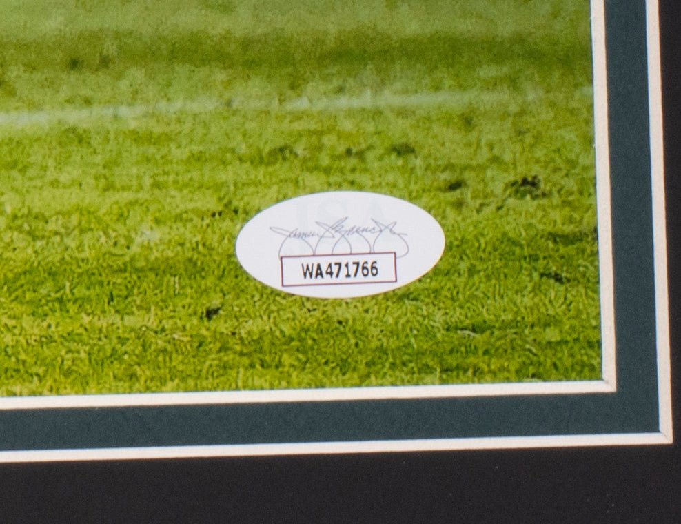 Own a piece of Philadelphia Eagles history with this Jalen Hurts signed and framed 11x14 photo—a must-have for any serious collector or devoted fan. This high-quality photo was hand-signed by Jalen Hurts and has been professionally authenticated by JSA to ensure its legitimacy. The sleek, ready-to-display frame makes it an excellent centerpiece for any sports memorabilia collection.