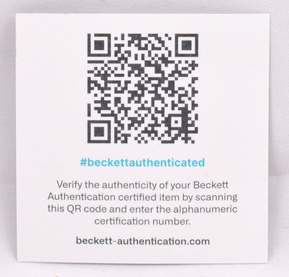 - Authenticated by Beckett Witnessed Authentication, featuring a Beckett-numbered sticker hologram and QR code verification for authenticity.