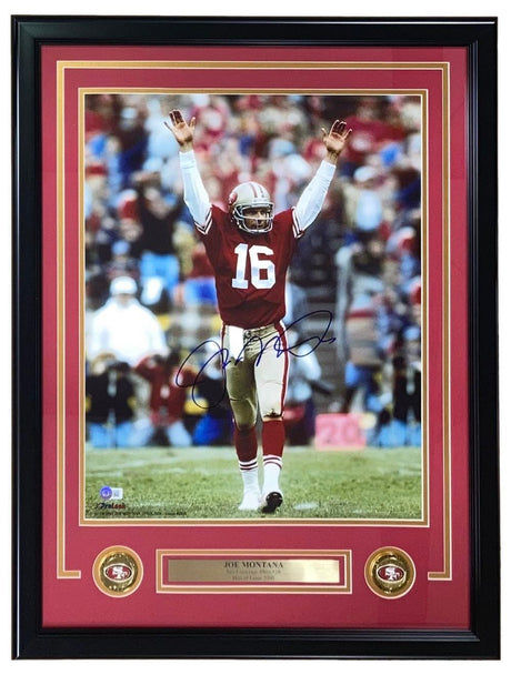 Joe Montana Signed Framed 16x20 San Francisco 49ers Arms Raised Photo BAS