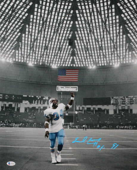 Very low stock (1 unit)$89Unit price /UnavailableEarl Campbell Autographed B&W Pointing Up Spotlight 16x20 Photo - Beckett W Auth