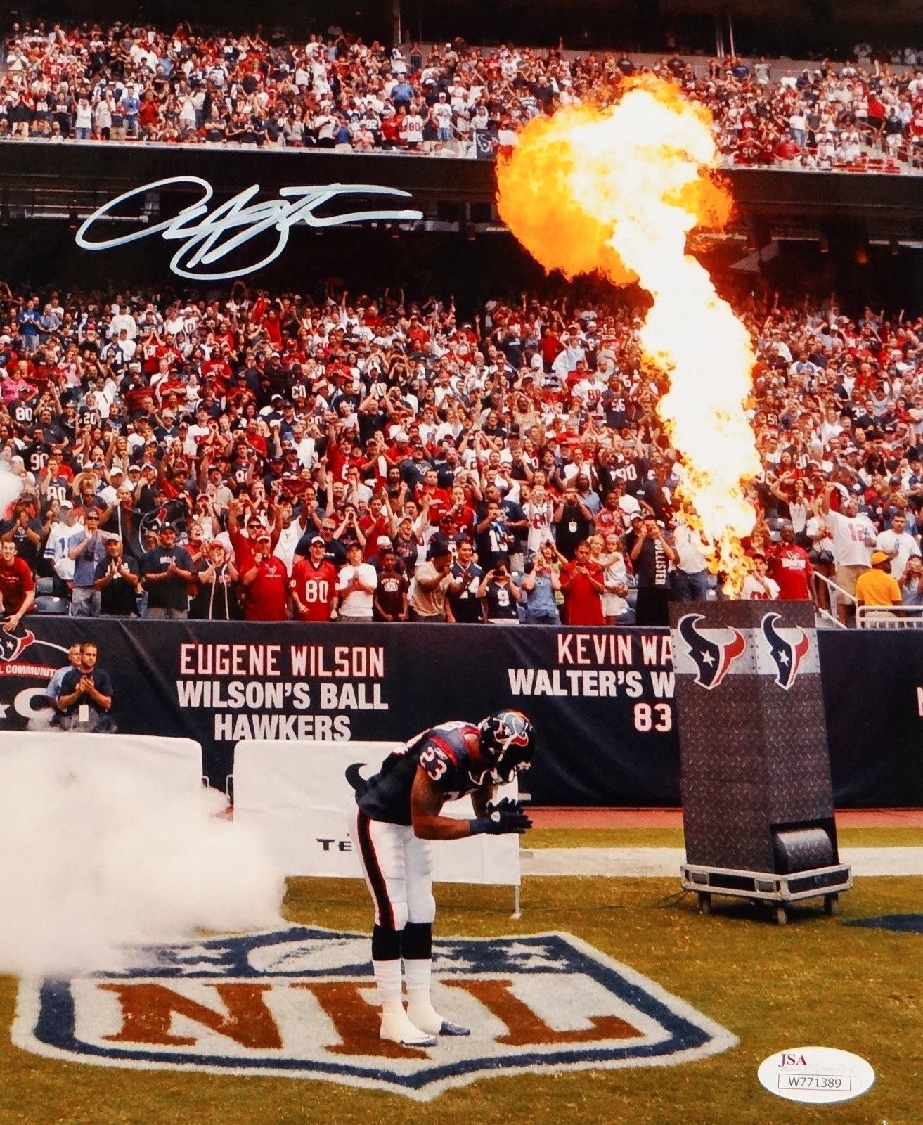 Arian Foster Autographed Texans 8x10 Bow Near Fire Photo- JSA W Authenticated
