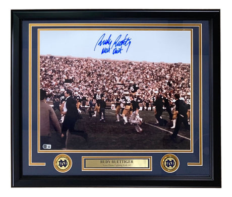 Rudy Ruettiger Signed Framed 16x20 Notre Dame Photo Never Quit BAS