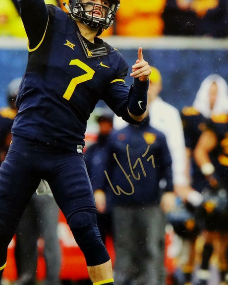 Will Grier Signed W. Virginia 16x20 Throwing in Yellow PF Photo- JSA W *Yellow