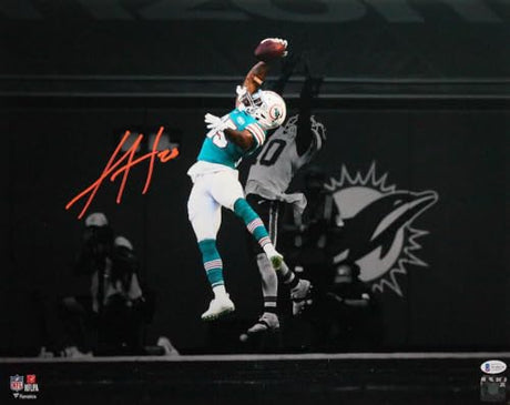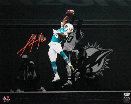 Xavien Howard Signed Dolphins Spotlight Catch 16X20 FP Photo- Beckett W *Orange