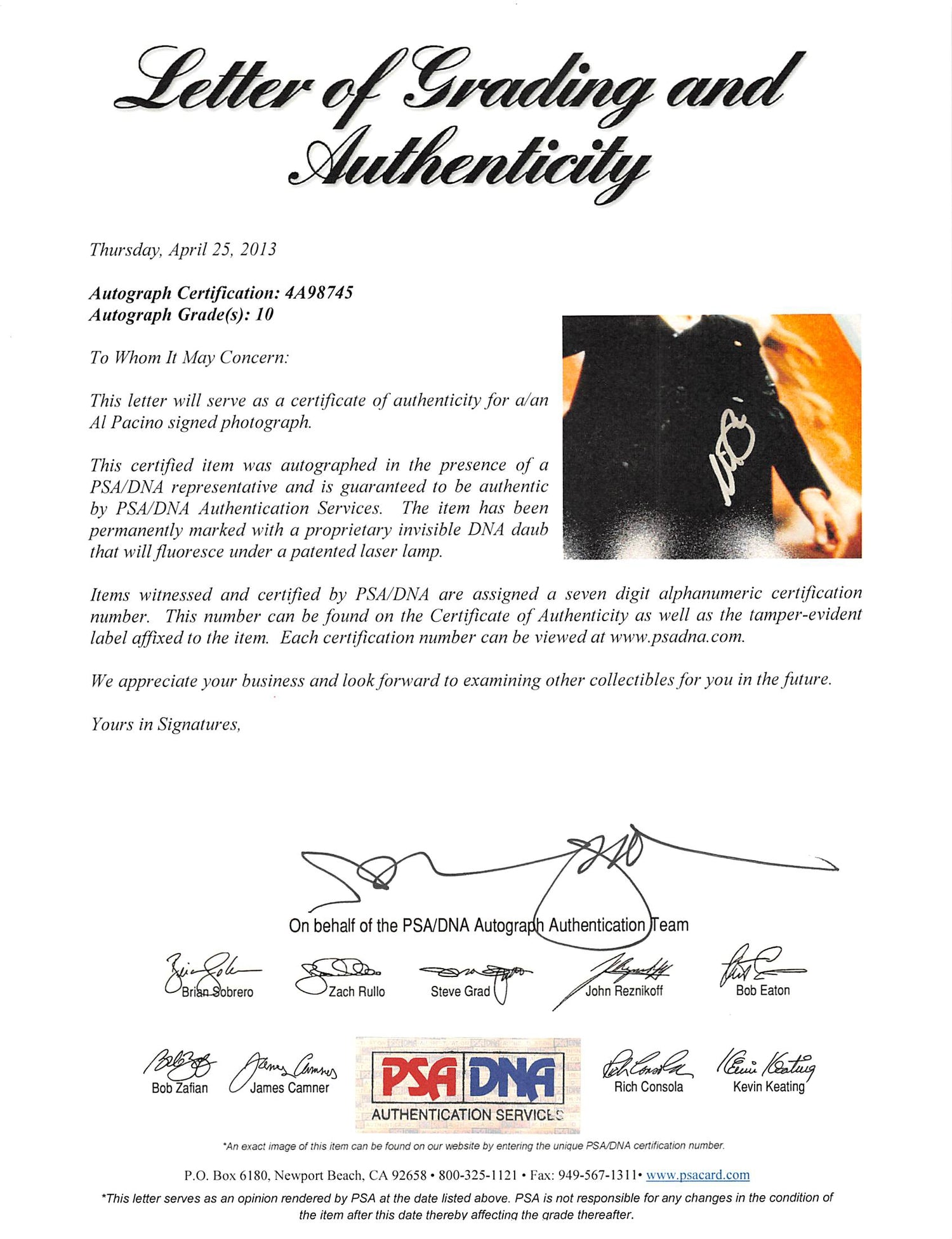 All signatures sold on Pristine Marketplace are 100% guaranteed authentic, offering buyers complete confidence in every purchase.