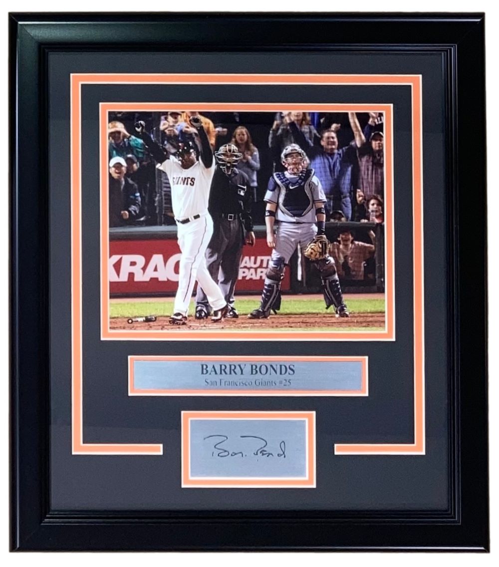 Enhance your sports memorabilia collection with this professionally framed Barry Bonds 8x10 San Francisco Giants photo. A legendary figure in baseball history, Barry Bonds electrified fans with his record-breaking career, making this a must-have for serious collectors and Giants enthusiasts.