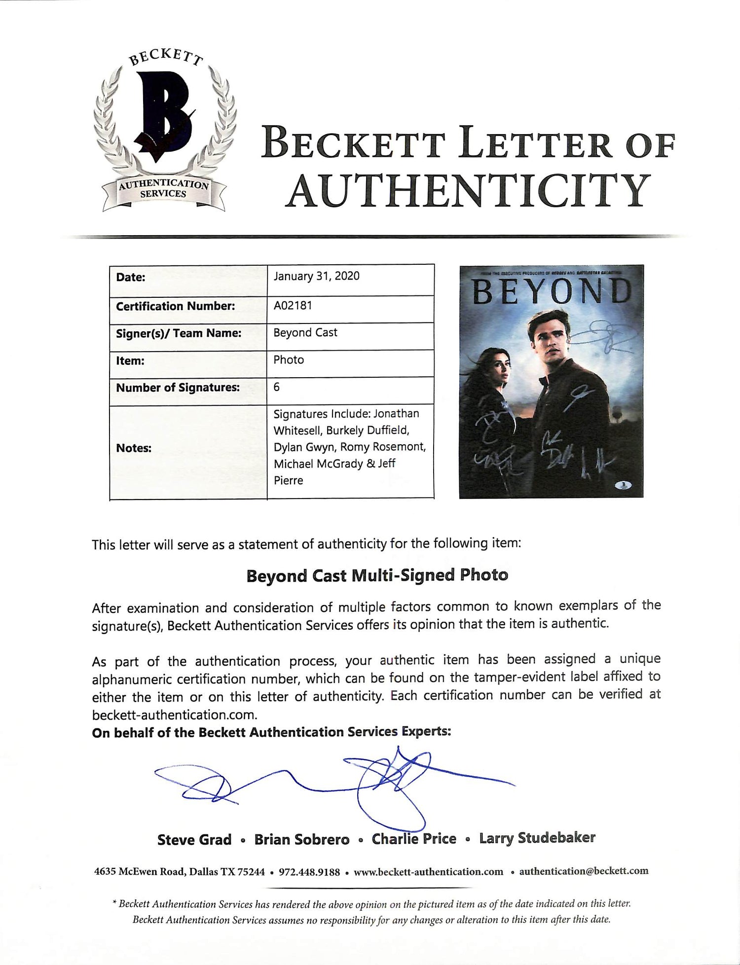 Own a piece of television history with this Autographed 11x14 Photo signed by the cast of Beyond, including Jonathan Whitesell, Burkely Duffield, Dylan Gwyn, Romy Rosemont, Michael McGrady, and Jeff Pierre. This exclusive collectible captures the essence of the acclaimed supernatural drama, making it a must-have for dedicated fans and memorabilia collectors.