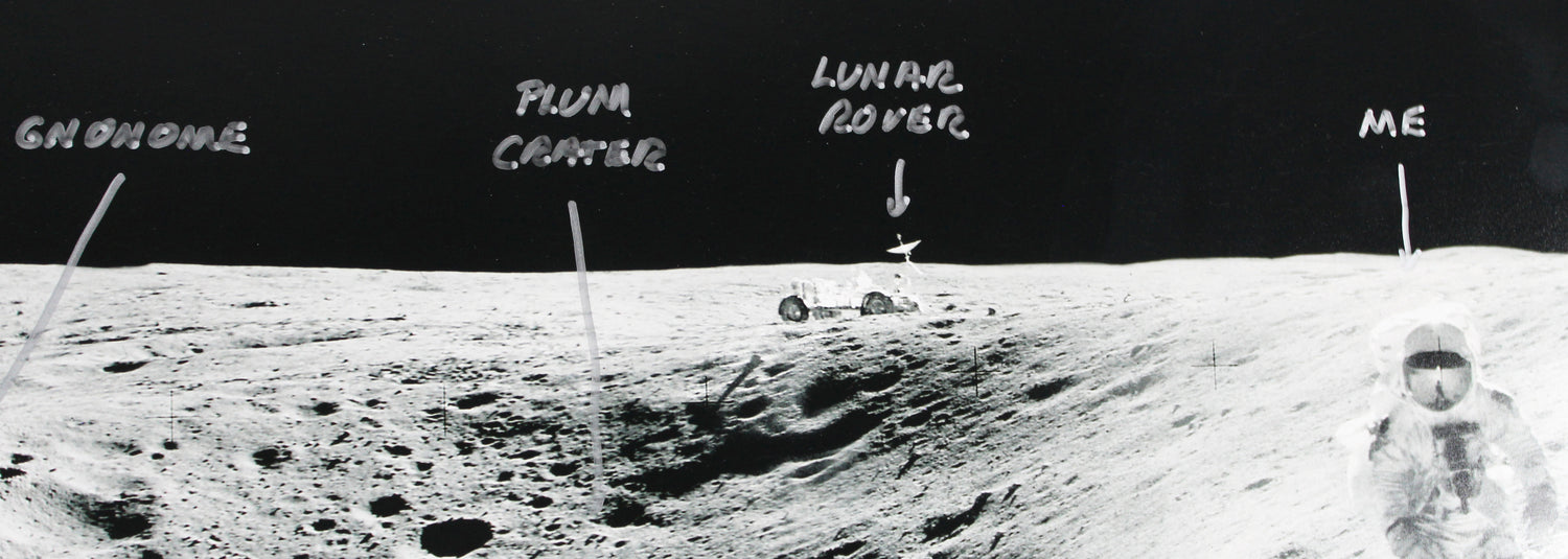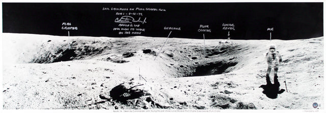 Charles Duke Apollo 16 "Plum Crater Rim" Signed 12x35 Photo BAS #AD38586