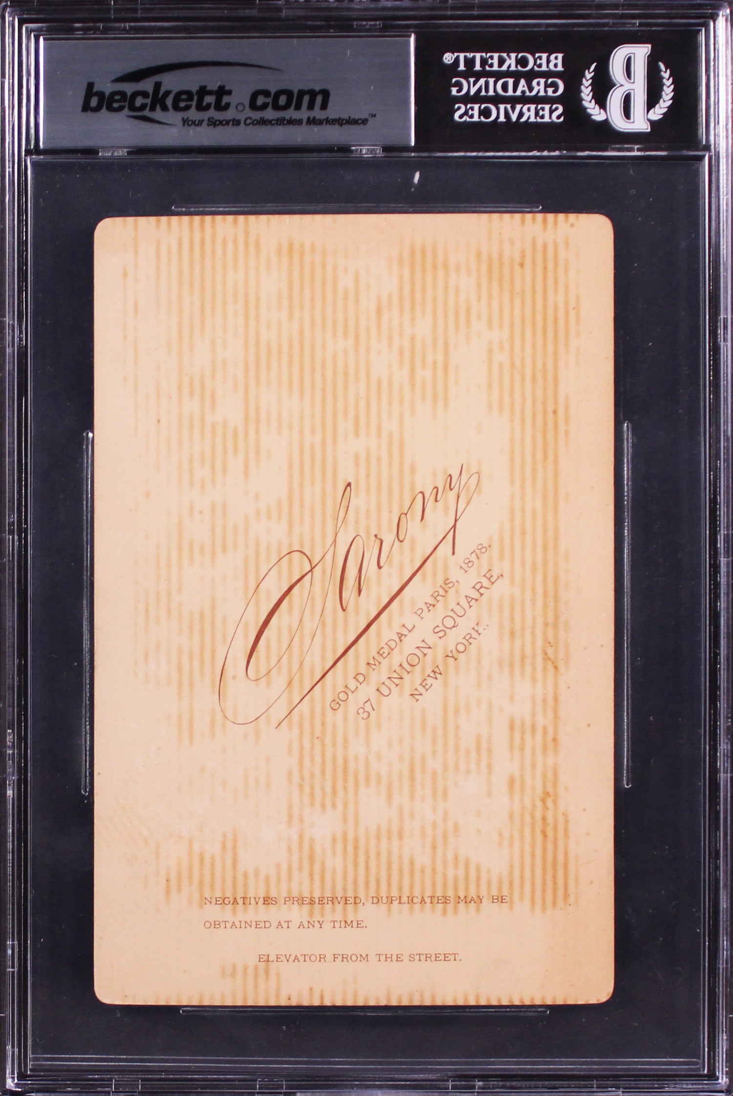 Charles Tiffany Authentic Signed 4.25x6.5 Sarony Cabinet Photo BAS Slabbed