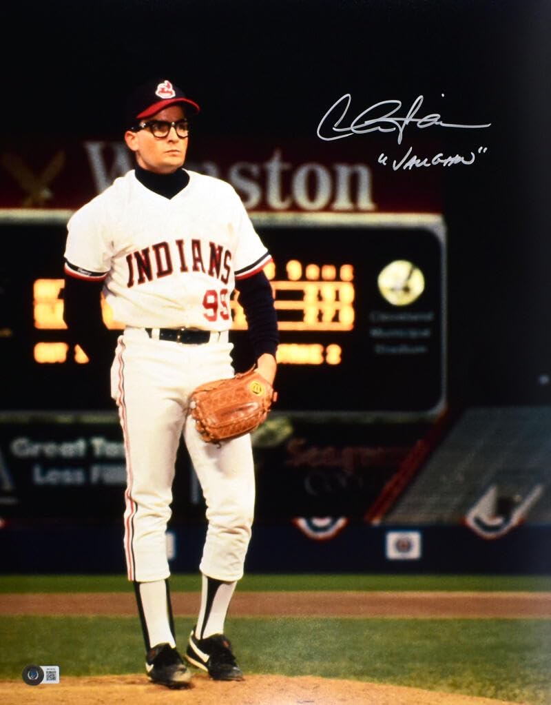Own a piece of sports and pop culture history with this hand-signed 16x20 photo of Charlie Sheen from the iconic baseball movie Major League. Featuring the exclusive "Vaughn" inscription, this collectible pays tribute to Sheen’s legendary portrayal of the wild and unpredictable pitcher, Ricky "Wild Thing" Vaughn.