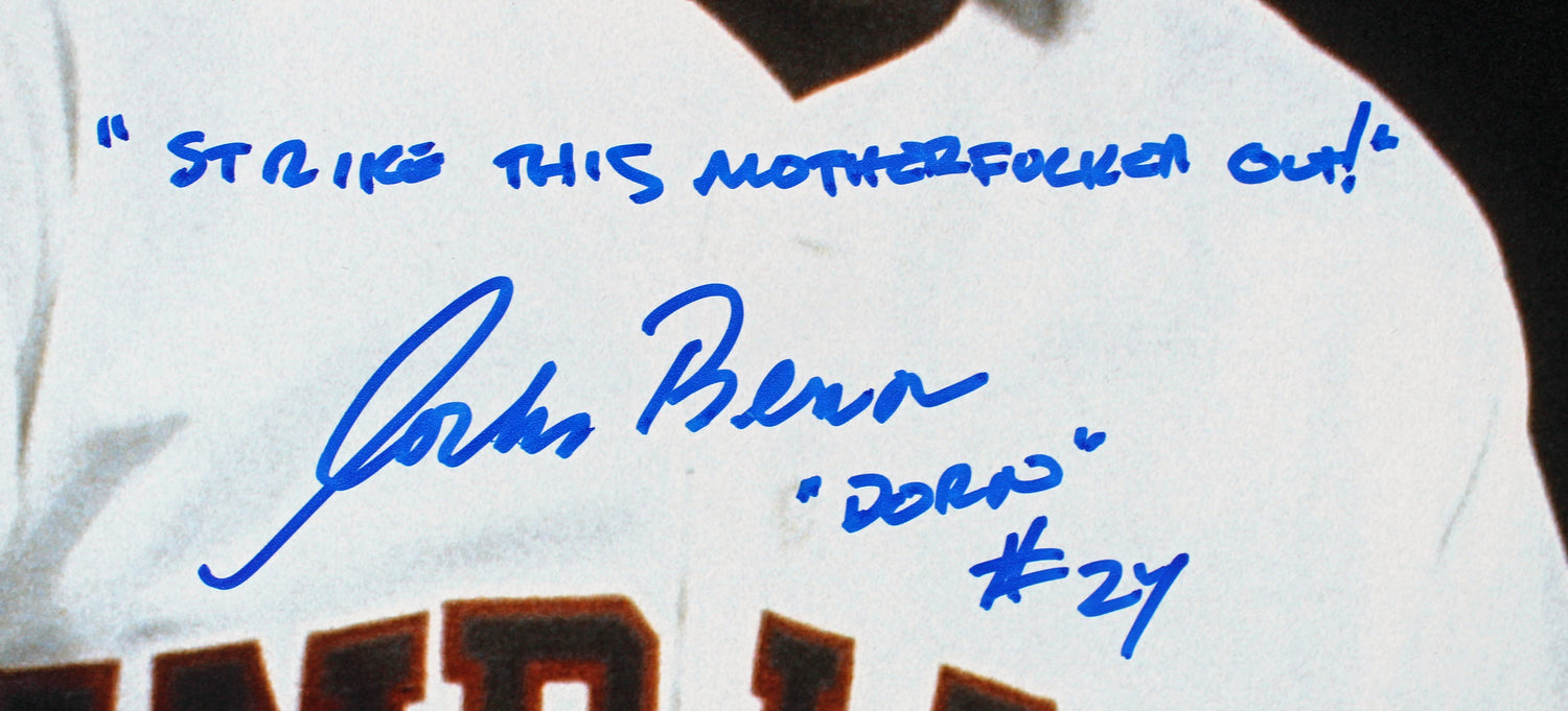 Own a piece of baseball movie history with this autographed 16x20 photo signed by Charlie Sheen (#99) and Corbin Bernsen (#24) from the iconic film Major League. This exclusive collectible features the memorable inscription: "Strike This Motherfucker Out Dorn", making it a must-have for fans of the classic sports comedy.